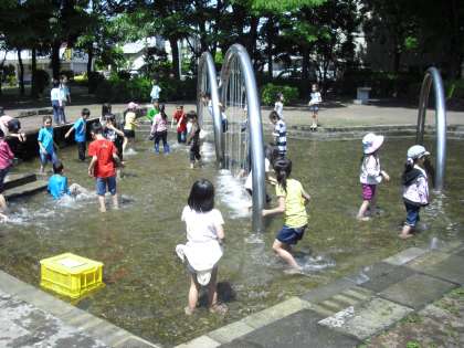 いつもとは違ったお友だちと水遊びで歓声をあげたり、アスレチックで遊んだり、楽しくお弁当を食べて、一人ひとりの子どもたちの笑顔が輝いていました。