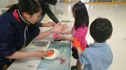 先生方に絵の具を塗ってもらうときの感触が何ともたまらなく気持ちいいそうで、どの子も思わず笑顔がこぼれていました。