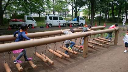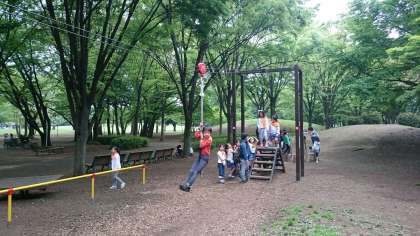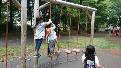 公園のアスレチックと遊具が貸し切り状態になり、夢中になって約1時間たっぷりと遊びました。