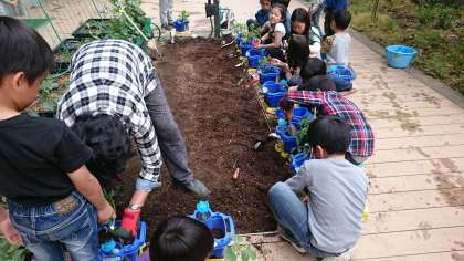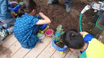 今日は、おうちから持ってきた苗を植え替えました。