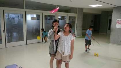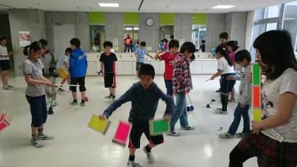 今日は、日本大学文理学部のジャグリングクラブの方々がお手伝いに来てくださいました。皿回しが難しいようでしたが、回し始めのコツを丁寧に教えてくださいました。
