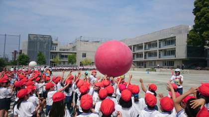 今日の全校練習は、応援と大玉送り。