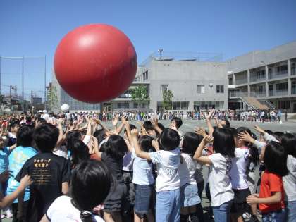 大玉送りは、1年から6年生まで応援や掛け声を掛け合って