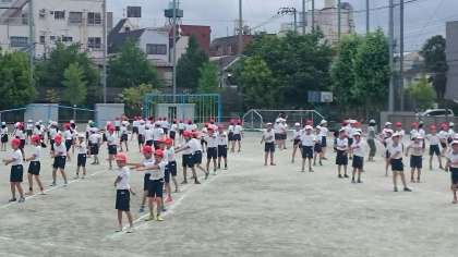 写真の様子は4年生の大江戸ダンスです。本番に向けて体型移動もばっちりです。