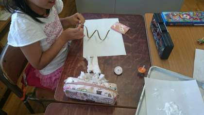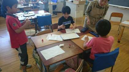 4年生の教室に入ると、何やら夢中で紙を巻いている子ども達。