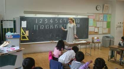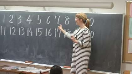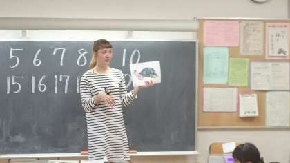 1〜20まで数字を逆に読んだり、動物や生き物のカードを使って質問をしたりして英語を知らない子どもも楽しみながら参加していました。