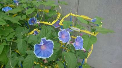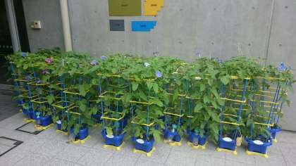 一年生の育てている朝顔。もうすぐ夏休みなので、おうちに持って帰ります。
