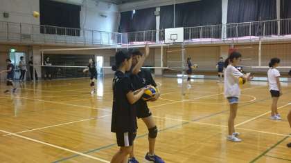 松沢小学校の子どもたちは、女子バレーボール部の練習に参加させていただきました。