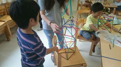 造っていくうちに筋交いを入れることに気が付いた子どもたち。