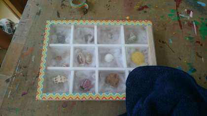貝の標本だけでなく、箱も子どもたちの手作りです。