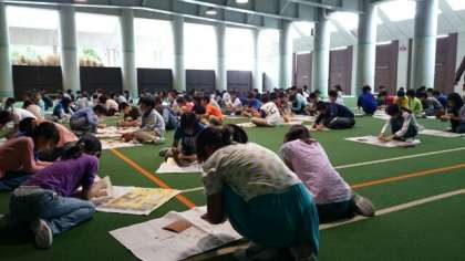 お弁当を食べた後は、コースターづくりに挑戦しました。