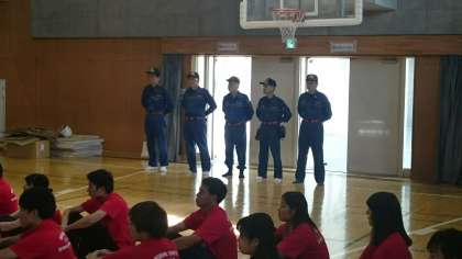 「避難所を体験しよう」が始まりました。