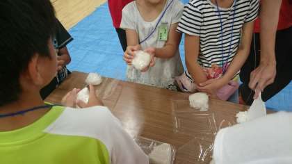9/10 どきどき土曜スクール避難所を体験しよう 6 公開日 2016/09/10 更新日 2016/09/10 できごと 夕食は、おにぎりと豚汁です。 自分で食べるおにぎりは自分で作りました。 おいしくいただきます。 いいね(0)
