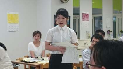 若手教員もベテランに負けずに積極的に発言します。明日の授業に生かすために全員本気で学びます。