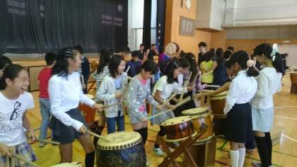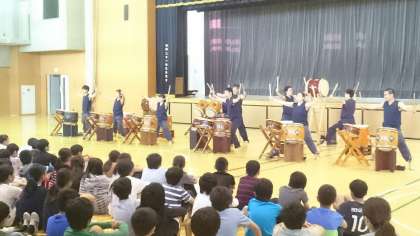 全国大会出場常連校の実力に子ども達も参観された保護者の方々も圧倒されてしまいました。本物を見ることは何よりの教育です。演奏を聴いた後に実際に和太鼓をたたかせていただくことができました。今後の練習に向けてよい体験ができました。