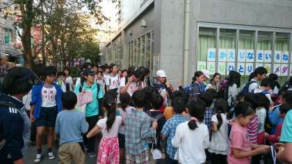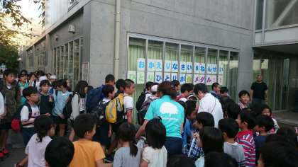 帰校すると、1年生が校門でお出迎え。6年生一人ひとりに金メダルをプレゼントしてくれました。小アリーナのガラス窓には、「6年生 ひとりひとりが金メダル」というメッセージがありました。