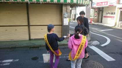 松原3,4丁目町会の方々と一緒に、駅前の放置自転車をなくそうという取組です。