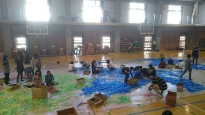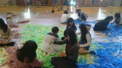 これは、校舎の壁面を飾る展覧会の共同作品作りです。