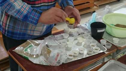 ていねいに整えて種をまくようにアドバイスをもらうと、おしゃべりもせず、黙々と種をまいていました。