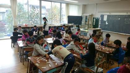1年生がペアになって楽しそうに学習しています。