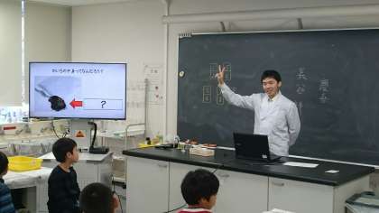 松沢中学校の長谷部先生をお招きしての理科の実験教室です。