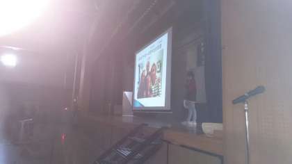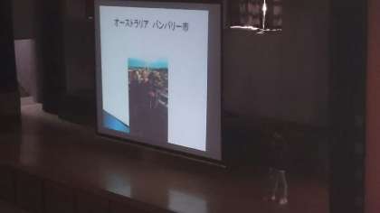 10月に学校の代表としてオーストラリアのバンバリー市に海外派遣に出かけた児童が、全校向けの報告会を行いました。現地の家庭にお世話になった時のことや大自然の中での体験の様子をプレゼンテーションソフトを使いながら説明しました。発表の態度も堂々としていて、さすが代表に選ばれただけのことはあると感心しました。立派な高学年の姿は、学校全体に良い影響を与えてくれます。