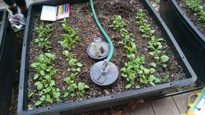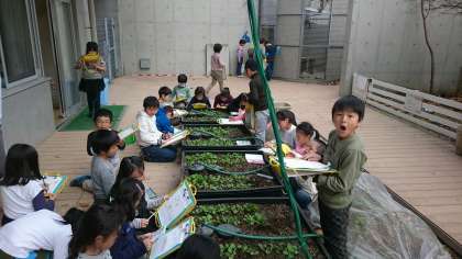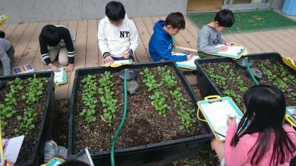寒い季節に青々と育っている小松菜を見て2年生もとても嬉しそうにしていました。