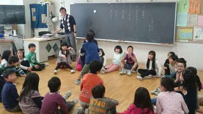 教室では、コントやマジック、宝探し、室内ゲームなどを行います。体育館や校庭ではボールを使った遊びや鬼ごっこなどが行われます。