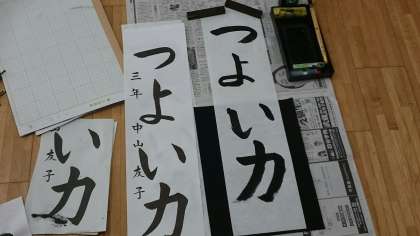 2年生までは硬筆ですので、3年生は初めて毛筆での書き初めになります。