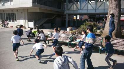 昨日までとは違い、暖かくなり子ども達も思い切り体を動かしていました。