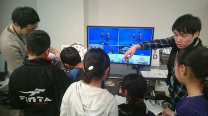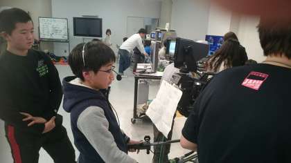 番組作りでは、カメラマン、キャスター、ディレクターなどを子どもたちが務めました。45分間で、仕事内容を覚え、テスト、リハーサル、本番と流れるように進んでいきました。指導して下さるプロの方の迫力に感化されて、集中力もグングン高まっていき、素敵な番組が出来上がりました。出来上がった番組は、後日送られてきます。