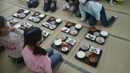 昔の人たちは自然を大切にしていたこと。食事をする際には設えをすることなどを教えていただきました。学習後には、実際に和食器に給食を盛り付けていただきました。素敵な和食器でいただく給食は、味覚だけではなく、視覚でもおいしさを味わいました。