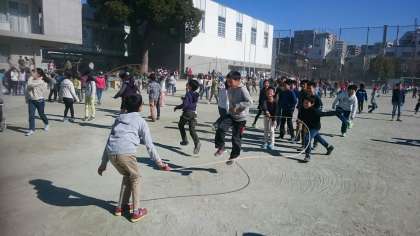 学年合計で2020回跳ぼうという目標を決めて頑張っています。