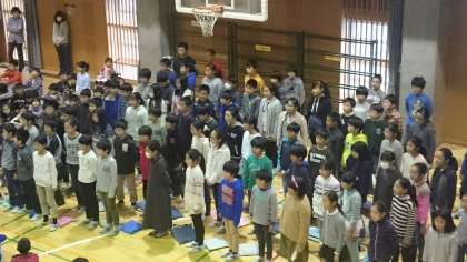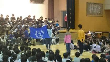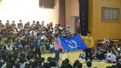 その後、6年生から校章旗の譲り渡しがありました。松沢小学校の伝統を継承し、さらに発展させてほしいという6年生のメッセージとともに受け取りました。