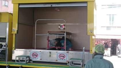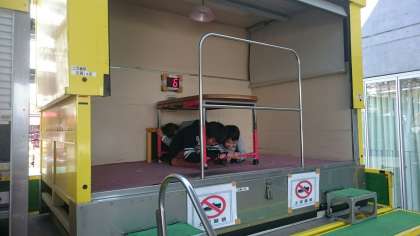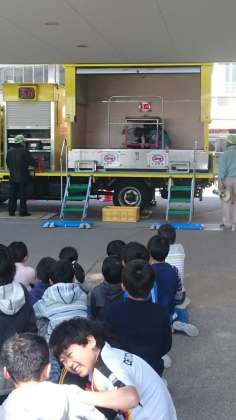 月例の避難訓練の後に4年生が起震車体験をしました。