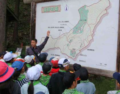 5年生の川場移動教室がスタートしました。群馬県の川場村にある世田谷区の施設で2泊3日を過ごします。1日目の午後は宿舎「なかのビレッジ」の近くの里山を巡り、里山についての話や自然観察などをしました。世田谷区と川場村の「友好の森」がここには広がっています。自然と生活が結びついた里山のことを勉強しました。