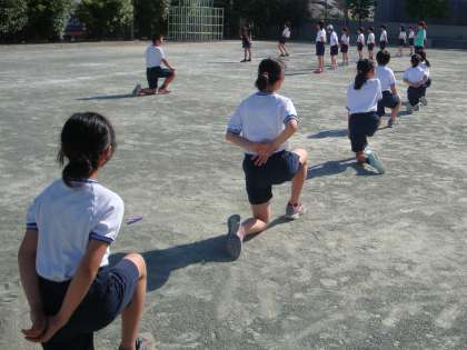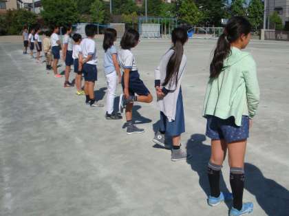 5・6年生の運動会係の打ち合わせがありました。さまざまな係が運動会の成功に向けて準備をしました。応援団が初めて校庭に出てきて練習をしました(1枚目の写真)。スローガンの係の子どもずらっと並んで大きな声で練習していました(2枚目の写真)。高学年の子どもたちは、競技や表現以外にも役割を持って運動会に取り組みます。自分たちの力で大行事を成功させる思いがそこにあります。
