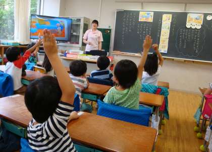 5/25 1年生道徳の授業 公開日 2017/05/25 更新日 2017/05/25 できごと 1年生の道徳の授業が行われていました。片付けについて話題になっていました。いろいろなことをみんなで考え、手を上げてどんどん発言していました。1年生もすっかり小学校の生活に慣れ、発言の決まり事なども守り、しっかり自分の考えをクラスのみんなに伝えていました。絵の資料を黒板に貼ったり、テレビに実物投影機で教材を映したり、授業がいろいろ工夫され、活気があって楽しそうに進んでいました。 いいね(0)