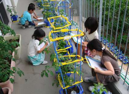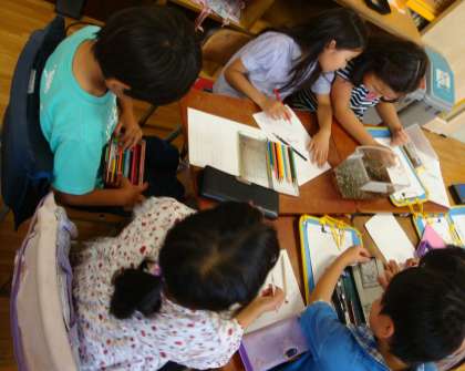 2年生の生活科の授業でも、本物を観察しながらの授業が展開しています。今日はアメリカザリガニを観察して、絵を書きました。さらに、ミニトマトやナス、オクラ、ピーマン、バジル、パプリカ、キュウリなどいろいろと苗を植えたものも観察しました。真剣な眼差しで子どもたちは観察していました。こうして科学の目が育つのだなと感じました。