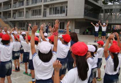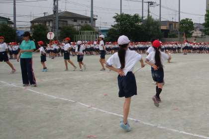運動会全校練習3日目が行われました。全校ダンス・松沢サンバの練習です。もう、休み時間を使って何度も楽しく踊ってきたので、踊りはバッチリです。本番と同じように全校が大きな輪になって踊りました。サンバ係のリードで楽しく練習しました。フィールドの真ん中ではバトントワラークラブのメンバーがバトンを持って踊ります。運動会当日は保護者や地域のみなさんも一緒に輪に入って松沢サンバを踊りましょう。楽しいですよ。