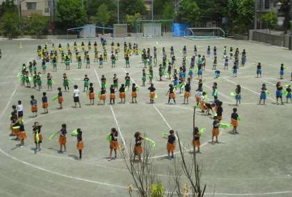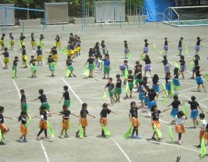 2年生表現の練習は本番と同じ衣装をつけての練習でした。華やかさも増して、子どもたちの気もちも高まっていました。2年生の周りだけハワイのさわやかな空気が広がっていました。