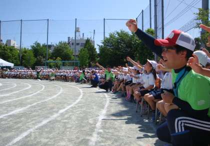 応援団が終始、応援のリーダーとして活躍していました。応援合戦はもちろん、各競技の応援もがんばっていました。130周年記念の松沢小へのエールもやりました。