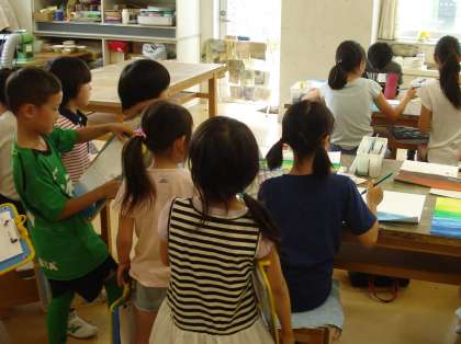 主事さんを訪ね、いろいろな道具を見せてもらったり、どんな仕事をしたりしているのか聞いていました(3枚目の写真)。