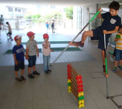 6/20 体つくり月間・竹馬 公開日 2017/06/20 更新日 2017/06/20 できごと 体つくり月間では、いろいろな遊びに挑戦し、体を巧みに動かす能力を高めたり、遊びの楽しさをつかんだりしています。中休み、高い竹馬を巧みにあやつる子どもたちを見つけました。下学年の子どもたちが驚いた目で見ていました。 いいね(0)