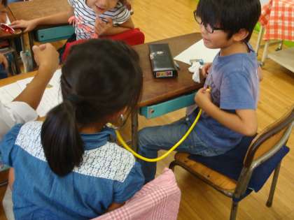 6/27 2年道徳ふしぎな音・学校公開3日目 公開日 2017/06/28 更新日 2017/06/28 できごと 学校公開3日目の5校時は全校で「生命尊重」の内容で道徳の授業を行いました。2年生では、「ふしぎな音」の学習をしていました。心臓は1日11万回近くも休まず動いていることを先生から聞き、子どもたちはびっくり。聴診器を使い、その命の原動力の心臓の音を聴いていました。小さい活動の積み重ねの中、子どもたちは命の大事さを感じていきます。 いいね(0)