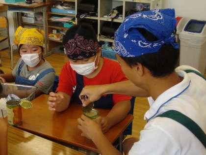 くすのき学級ではフルーツポンチをつくっていました。缶切りを使って、先生からやり方を教わりながら、一生懸命フルーツ缶を開けていました。楽しく作業して、その後、おいしいすてきな授業を展開していました。