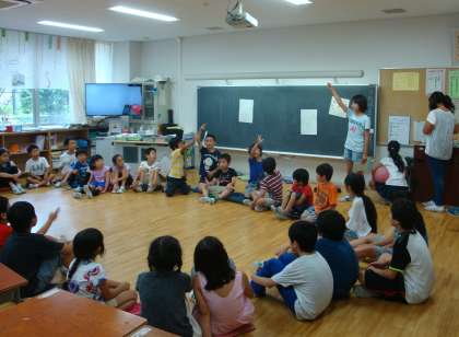 毎月1回全学年がグループに分かれて異年齢集団をつくる「たてわり班活動」が行われています。今日は今年度になって3回目。リーダーの6年生もかなり活動に慣れてきました。1年生からみんなが楽しく過ごすということは、結構難しいこどです。いろいろアイディアを出し合いながら進めています。3枚目の写真のグループは、間違い探しをしていました。みんながいろいろなポーズをしていて、それをオニ役の子が覚えます。その後、ポーズを数人が変え、どこが変わったか当てて楽しみます。盛り上がっていました。たくさんの人数でしかも異年齢で楽しく遊ぶ経験を子どもたちは積んでいきます。学校中に笑い声と歓声が響いていました。