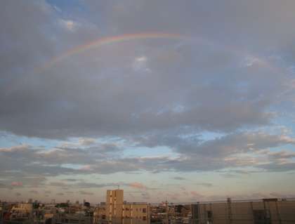 7/13 夕方虹が見えました。 公開日 2017/07/13 更新日 2017/07/13 できごと 夕方、虹が出ました。今日、音楽朝会で楽しくみんなで「にじ」の歌を歌ったからでしょうか。外へ出て写真を撮っていたら、どこからか子どもたちの元気な「にじ」の歌声が聞こえてきました。虹に気付いた子どもたちが、この町のあちこちで歌っていると思うとなんだか嬉しくなってきます。 いいね(0)