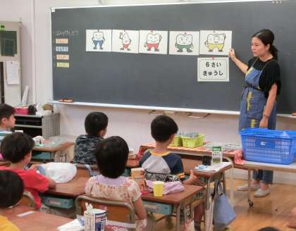 1年生の教室では保健の安西先生による歯磨き指導が行われました。歯のことを学習し、鏡をみながらしっかりと磨く方法を教えてもらいました。歯は健康と密接に関係します。子どもの頃、きちんと歯磨きしないでむし歯にしてしまうと、ずっとむし歯と付き合い続けなければなりません。丈夫な歯を保ってほしいです。