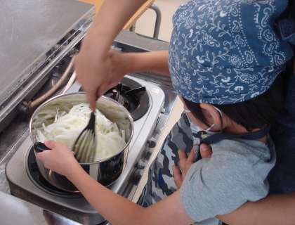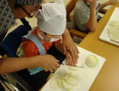 家庭科室ではきはだ学級の子どもたちが調理実習をしていました。「ハッシュドビーフとハッシュドポークを食べ比べてみよう」ということで楽しくお料理をしていました。ちょっとタマネギが目にしみて涙が出ていましたが・・・。